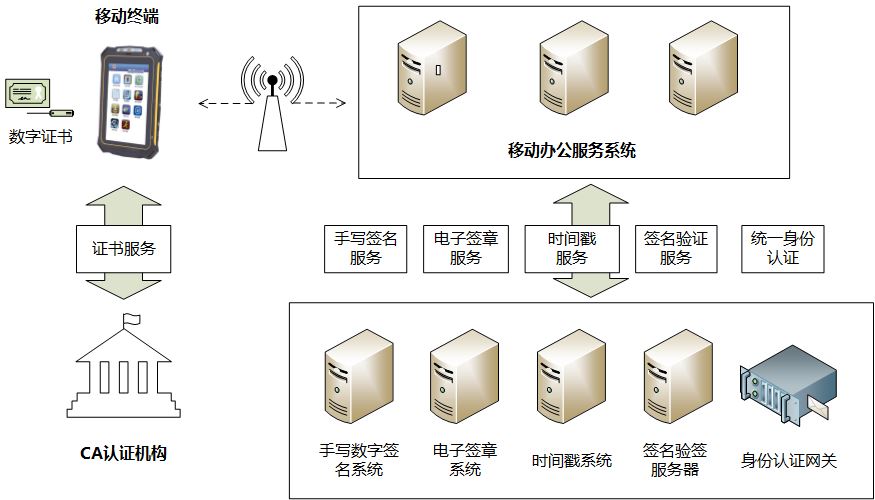 近年来,随着移动互联网的发展及信息化建设的快速推进,众多行业都在积极推动业务的无纸化转型,例如通讯行业的移动营业厅,保险行业的电子保单等,金融行业的移动柜台、电子业务单等,医院的移动巡房、知情同意书等,无纸化移动办公得到了越来越多的应用。随着移动办公应用的不断推广,所面临的安全需求也日益迫切,须针对移动办公的业务特点,基于PKI认证、电子签名等技术,实现移动终端手写签名、无纸化归档等业务需求。